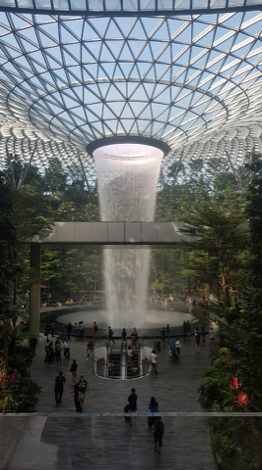 I noticed the huge numbers of people mesmerised by the Rain Vortex – many posing for selfies, some taking videos and sharing the experience with friends. The noise of the water thundering down from the oculus at the top was deafening and occasionally some spray would escape, leaving you with a cooling mist on your face. What I was surprised by, however, was the number of locals that had travelled to Jewel to share the experience.